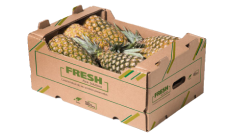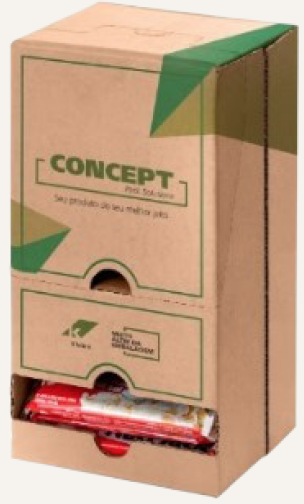 Desarrollado en diferentes tamaños a partir de cartón corrugado súper resistente, este embalaje reduce el uso de plástico y minimiza el desperdicio del producto envasado.